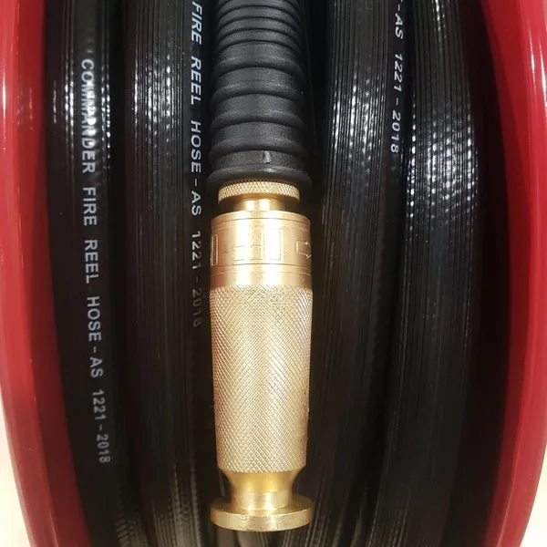Our Commander Fire Hose Reel range is a clean modern design which will compliment any installation and is constructed with high quality components, which you can count on to protect valuable assets from Class A fire risks. (Class A fires include fires involving paper, wood, textiles, rubber, and other solid materials).Image shows quality brass nozzle which is moulded on to the hose.Note product may differ from images shows. Click here to view our full range of Fire Hose ReelsPayment & Security